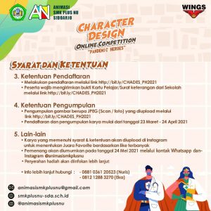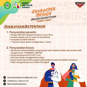 Walaupun di tengah pandemi, tidak menutup Kreatifitas kita loh. Yuk para pelajar kelas 9 SMP/Sederajat se-Jawa Timur, daftarkan dirimu dan raih hadiahnya dalam Character Design Online Competition dengan Tema ” Pandemic Heroes”.